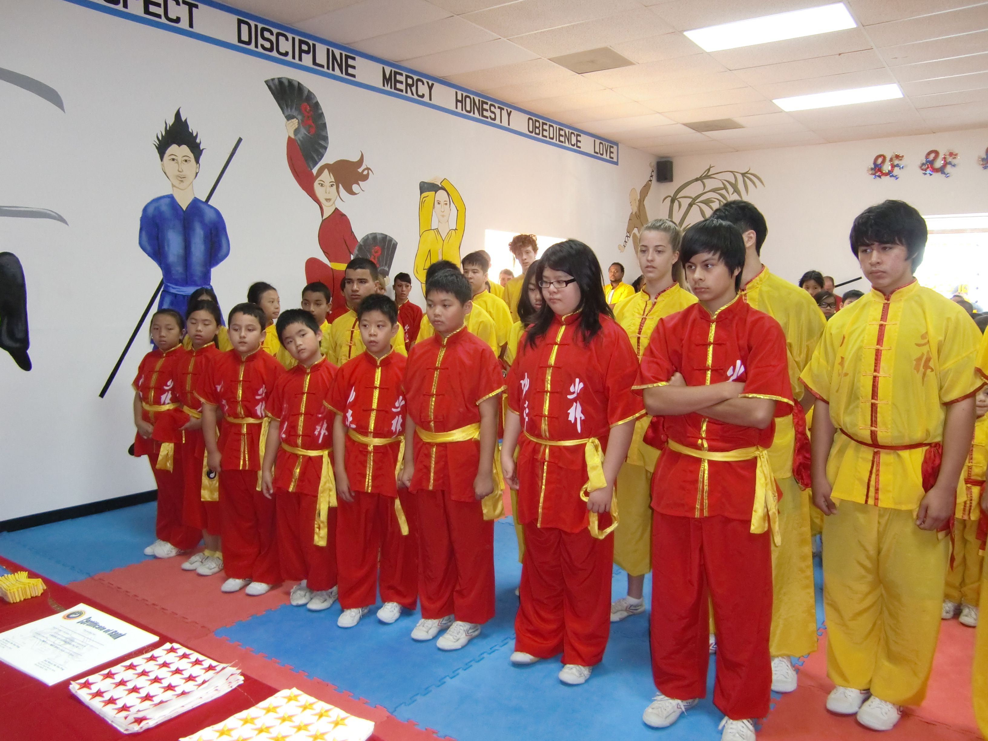 Upon entering the school, please bow towards the masters as you enter the training hall in the traditional Shaolin way. If you do not see the instructor, bow towards the middle of the room and then enter. You may ask any of the masters for clarification if you are unfamiliar with the correct manner in which to bow.